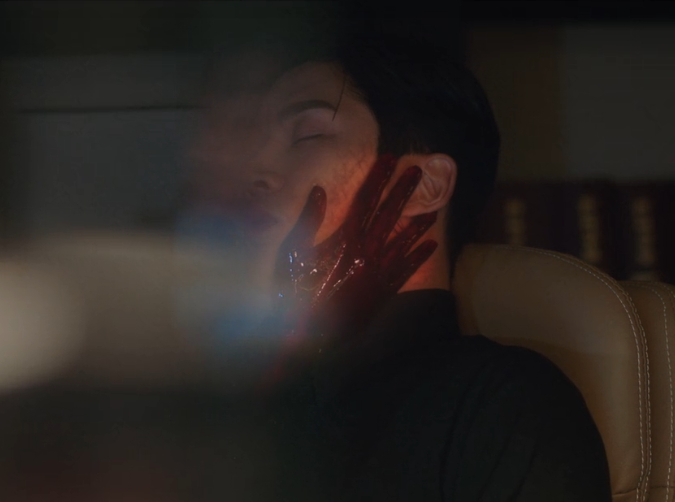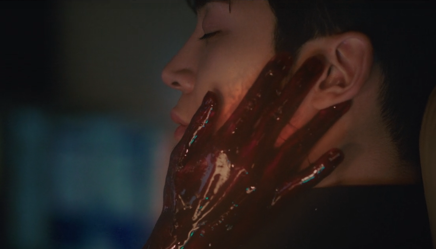 신유 밑에서 갑자기 시뻘건 손이 나타나 신유의 볼을 감쌉니다.