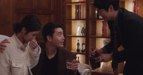 그걸 본 다른 직원이 대표에게 시선을 돌리려 술 한잔을 건넵니다.