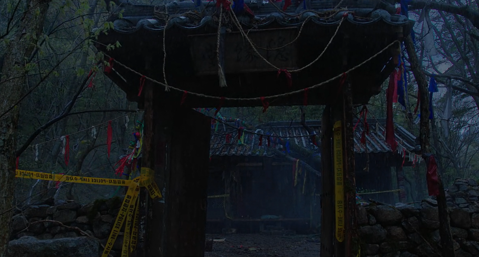 비가 내리는 날 산속의 폐가