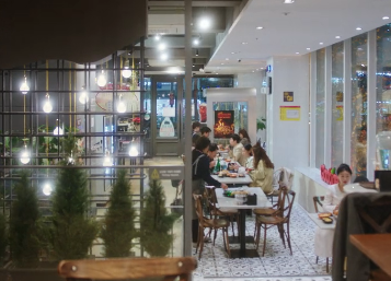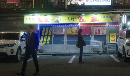 그때 홍조가 치킨집 앞을 지나갑니다.
