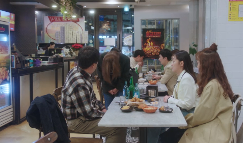 공팀장, 수정선배, 새별선배는 치킨집에 와서 이야기를 이어갑니다.