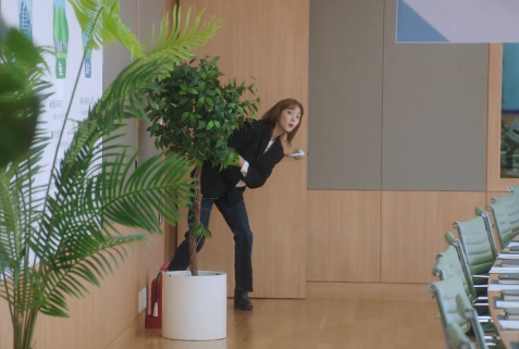홍조가 회의실을 몰래 들어옵니다.