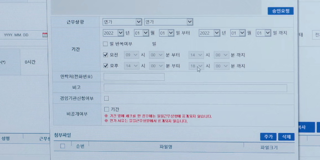 연가 신청을 하는 신유.