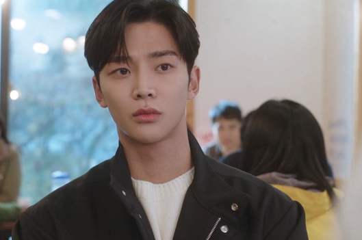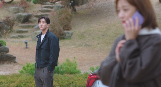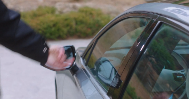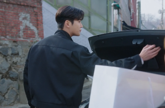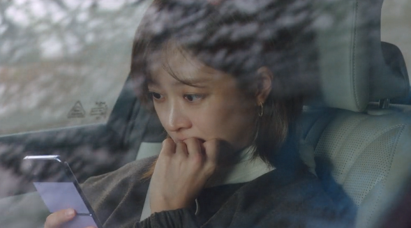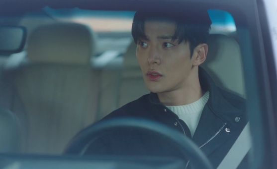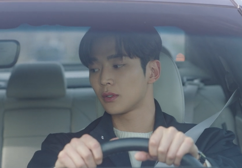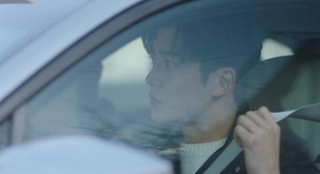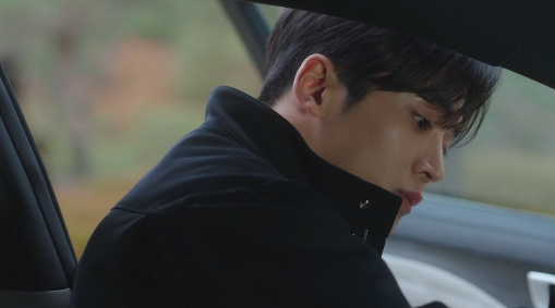 뒤도 안 돌아보고 무심하게 차에 타다가 백미러로 홍조를 보는 신유입니다.
