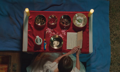 홍조는 주술을 하기 위해 준비 중입니다.