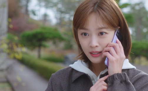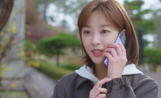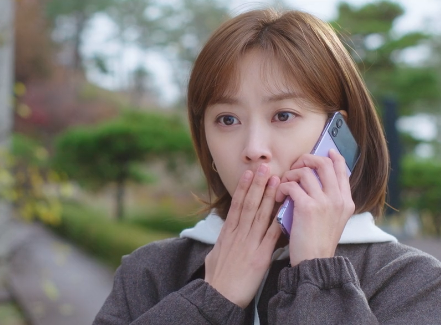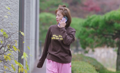 부끄러워하며 재경의 전화를 받는 홍조.