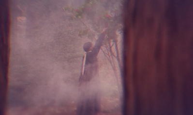 누군가 와서 가지를 내려주니 열매를 딴 소녀